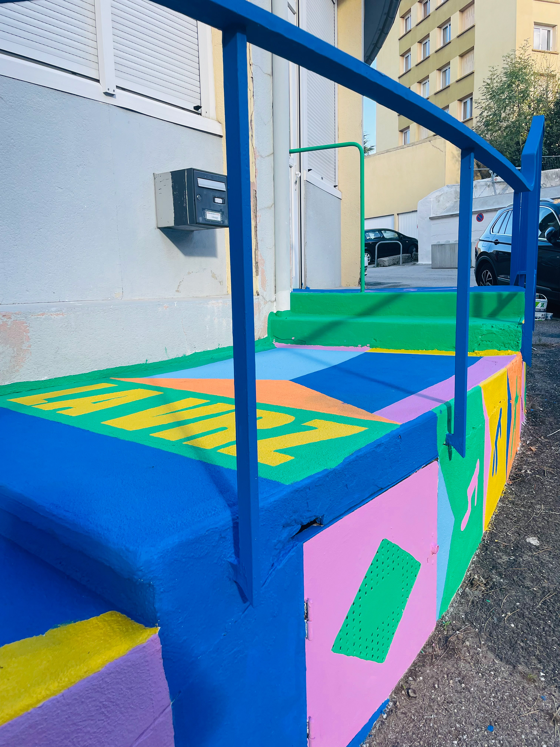 Mon cœur est vert pour cette nouvelle fresque à Saint-Étienne, au centre social du quartier Vivaraize. 4 jours à peindre au milieu de cette musique stéphanoise et l’odeur chaude du thé à la menthe.