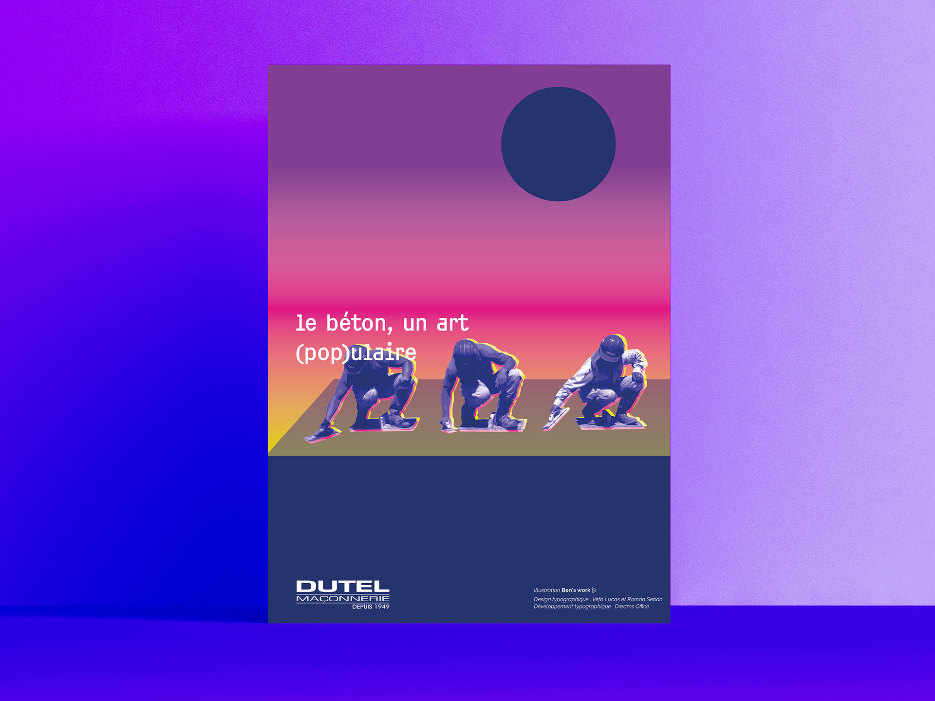 du béton, de la P O P, une garantie de santé mentale avec ce visuel ambitieux qui permet de valoriser un métier noble dont le savoir-faire se transmet de génération en génération, et ça depuis 1949. Merci à l'entreprise Dutel d'avoir l'esprit curieux et de faire vivre la P O P culture. Mais c'est quoi la P O P culture ? (Antoine Decaune)