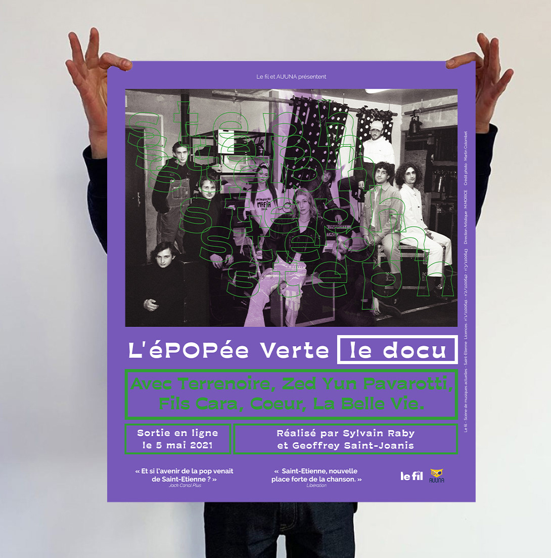 Nouvelle collab avec la salle de concerts stéphanoise, Le Fil. Réalisation du visuel pour le docu l'éPOPée Verte.