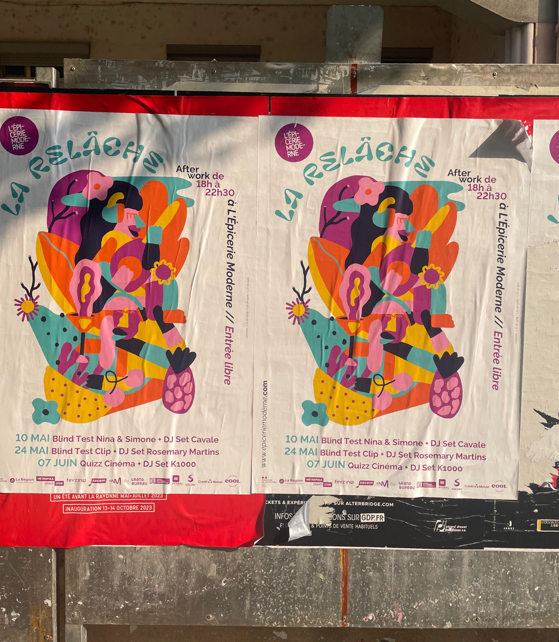 DA et graphisme pour l'événement La Relâche 2023 organisée par la salle de concerts L'Épicerie Moderne <3