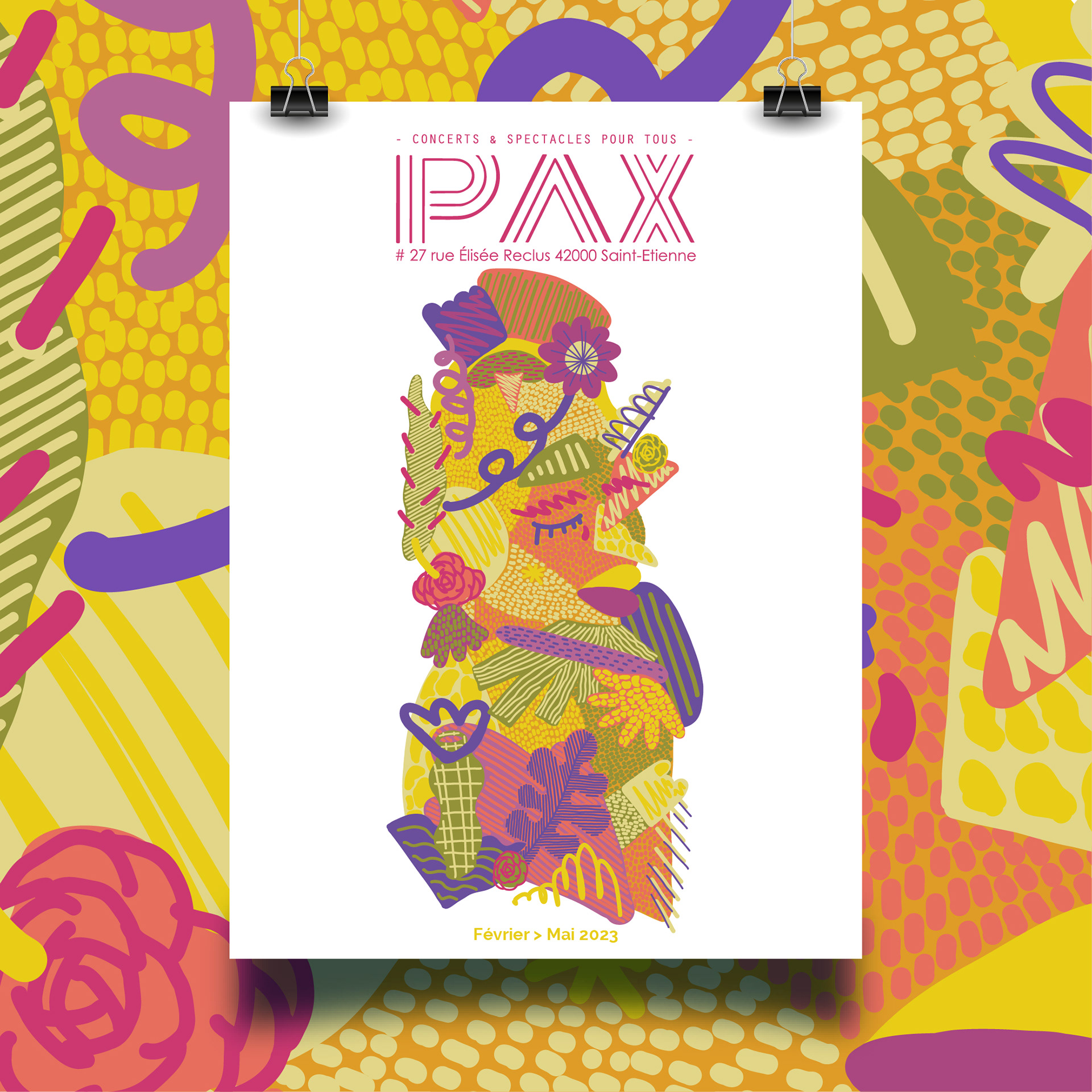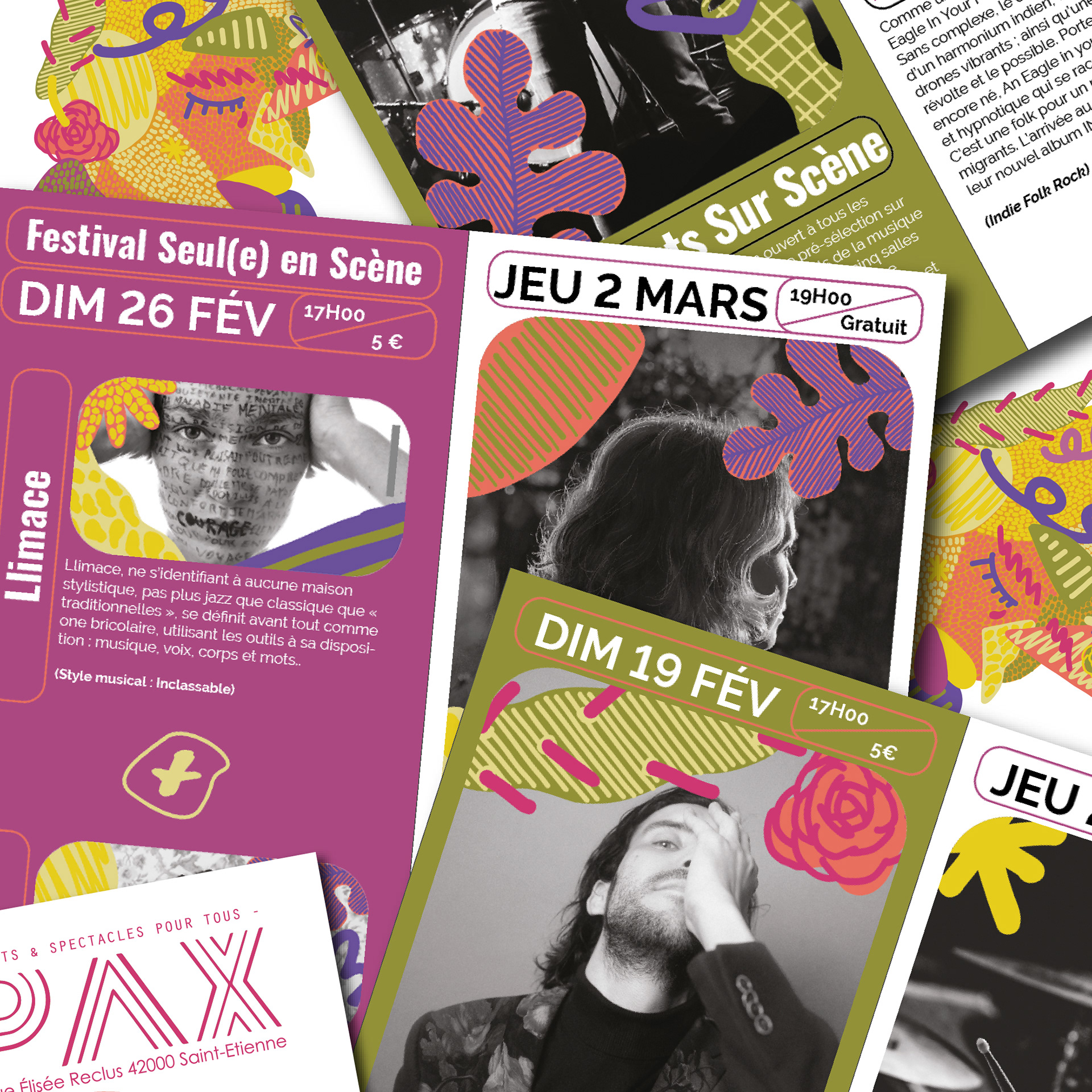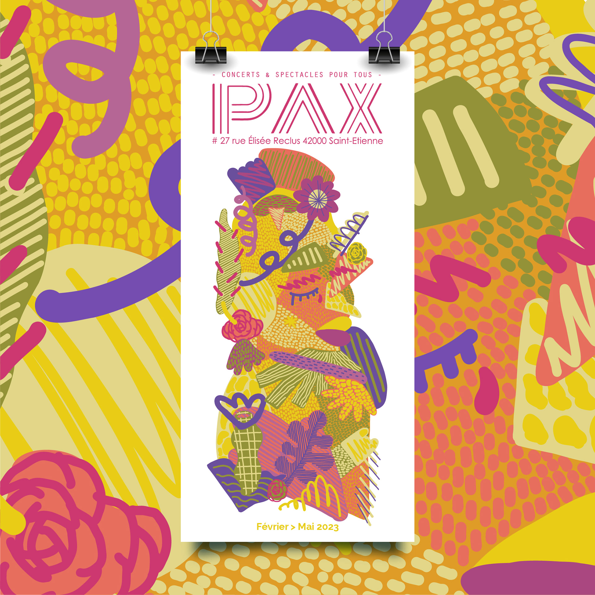 Direction artistique et graphisme pour la salle de concerts du Pax à Saint-Étienne (Saison février > mai 2023)